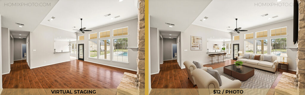 Help buyers look past the clutter, outdated wallpaper, or unfinished construction. We digitally remodel properties to show their fully finished potential.